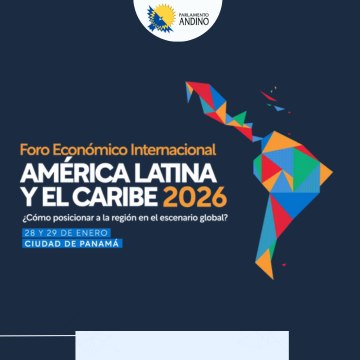 El Parlamento Andino participará en el Foro Económico Internacional América Latina y el Caribe 2026, evento de alto nivel organizado por la CAF – Banco de Desarrollo de América Latina y el Caribe, que se desarrollará los días 28 y 29 de enero de 2026 en la ciudad de Panamá, República de Panamá, y que reunirá a jefes de Estado, autoridades gubernamentales, representantes de organismos multilaterales, líderes empresariales y referentes académicos de la región y del ámbito internacional.